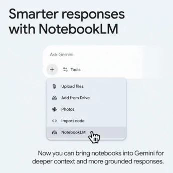 O NotebookLM é uma ferramenta poderosa para sintetizar informações de vastas coleções de documentos, incluindo PDFs, Google Docs e muito mais, tudo com fontes claras e citáveis. Ao adicionar notebooks diretamente ao Gemini, os usuários podem expandir essa base de conhecimento profunda e específica e obter respostas mais relevantes com todo o poder dos recursos avançados de conversação e criação de conteúdo do Gemini.