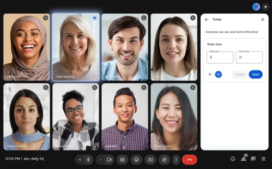 Agora você pode criar cronômetros de reunião na barra lateral do Google Meet. O anfitrião/coanfitrião pode gerenciar o cronômetro se os controles do anfitrião estiverem ativados. Se os controles do anfitrião estiverem desativados, qualquer pessoa na reunião poderá gerenciá-lo. Assim que o cronômetro for iniciado, ele ficará visível para todos os participantes da reunião. Você também pode pausar ou cancelar o cronômetro após o início.