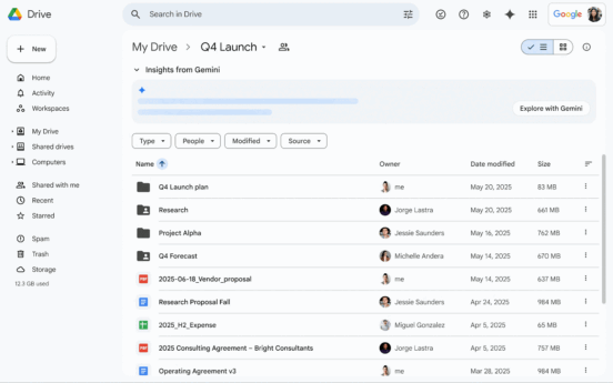 No início deste ano, introduzimos os “lembretes” do Gemini na parte superior das pastas do Google Drive e, agora, estamos tornando ainda mais fácil obter uma visão geral do conteúdo das suas pastas. O Gemini agora fornecerá proativamente informações sobre os arquivos dentro de uma pasta, diretamente na parte superior da visualização da pasta. Isso facilita a compreensão rápida do conteúdo sem precisar abrir arquivos individuais. Para uma análise mais detalhada, você pode clicar em “Explorar com o Gemini” para obter um resumo completo ou fazer perguntas adicionais no painel lateral do Gemini.