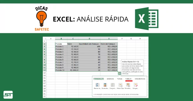 EXCEL: Conheça a função Análise Rápida (Ctrl+Q) | Dicas SAFETEC